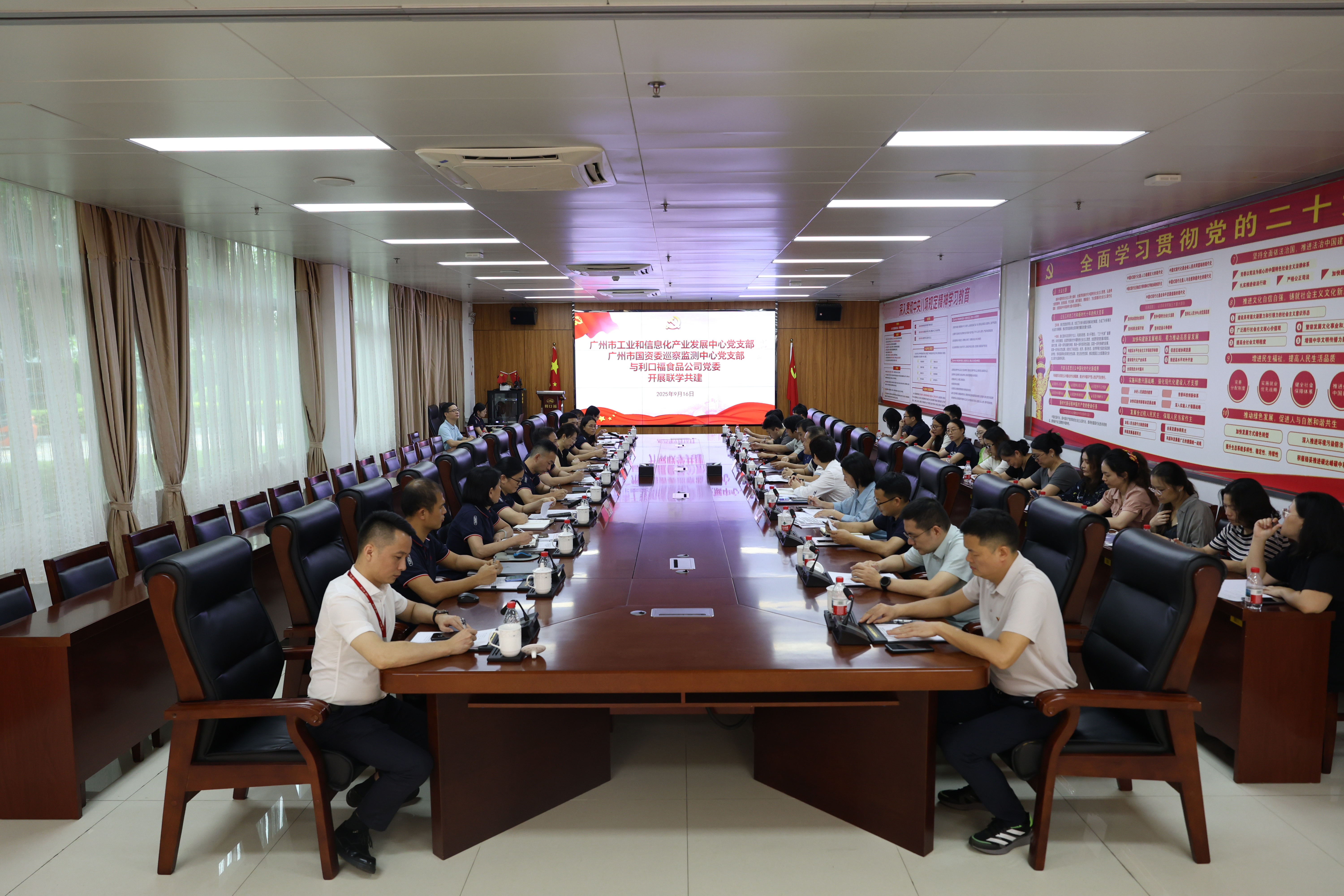 为深入贯彻新时代党的建设总要求,积极探索党建共建新路径,加强政企间的沟通交流与发展协同,9月16日下午,市工业和信息化产业发展中心党支部、市国资委巡察监测中心党支部与广州酒家集团利口福食品公司党委开展联学共建活动。市工业和信息化产业发展中心、市国资委巡察监测中心相关负责同志,广州酒家集团高管、利口福食品公司领导班子以及各方业务负责人参加活动。