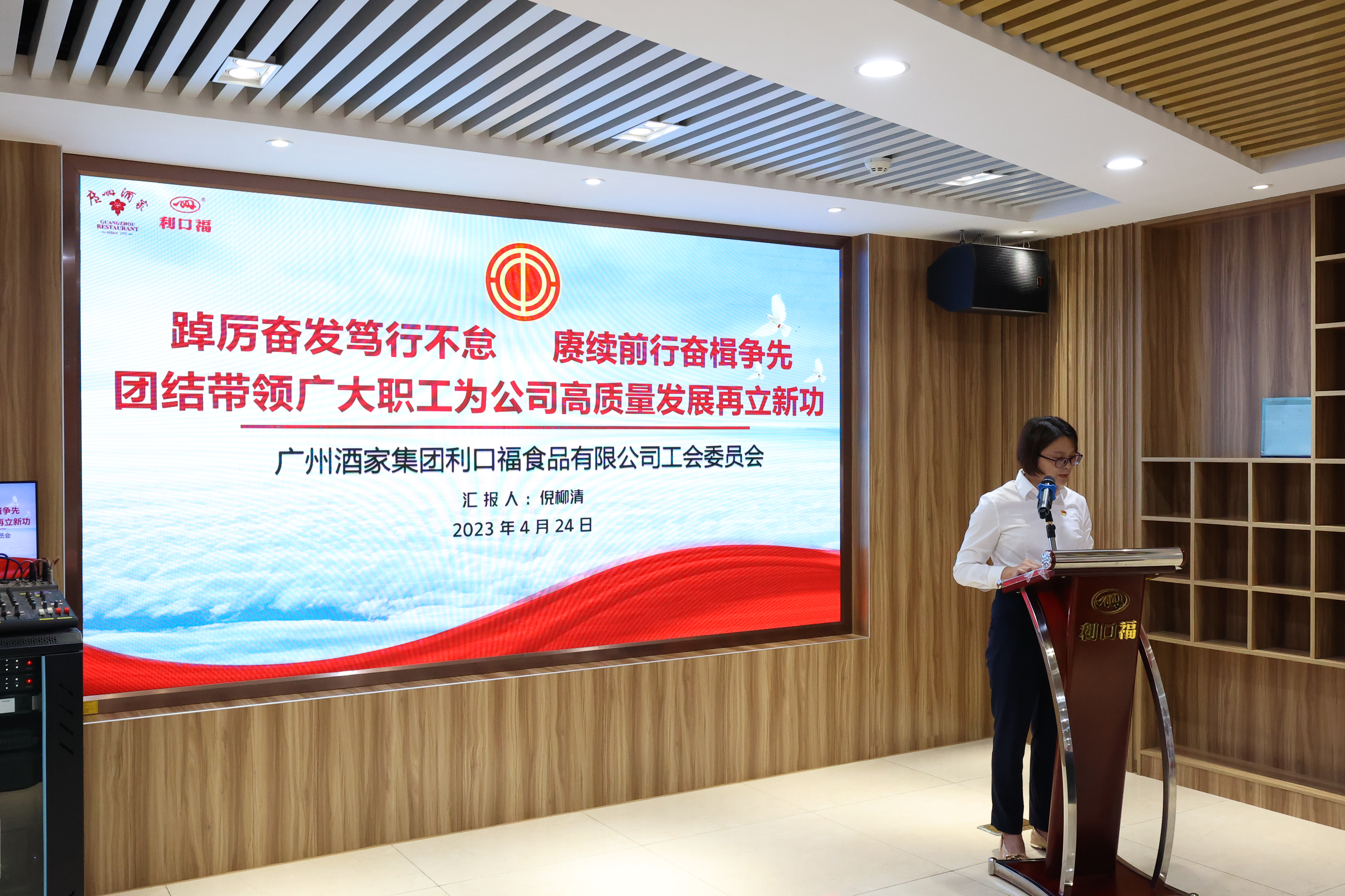 4月24日上午,广州酒家集团利口福食品有限公司工会第四届第一次会员代表大会顺利召开。集团工会主席郭伟雄出席会议,会议由公司工会副主席倪柳清主持。