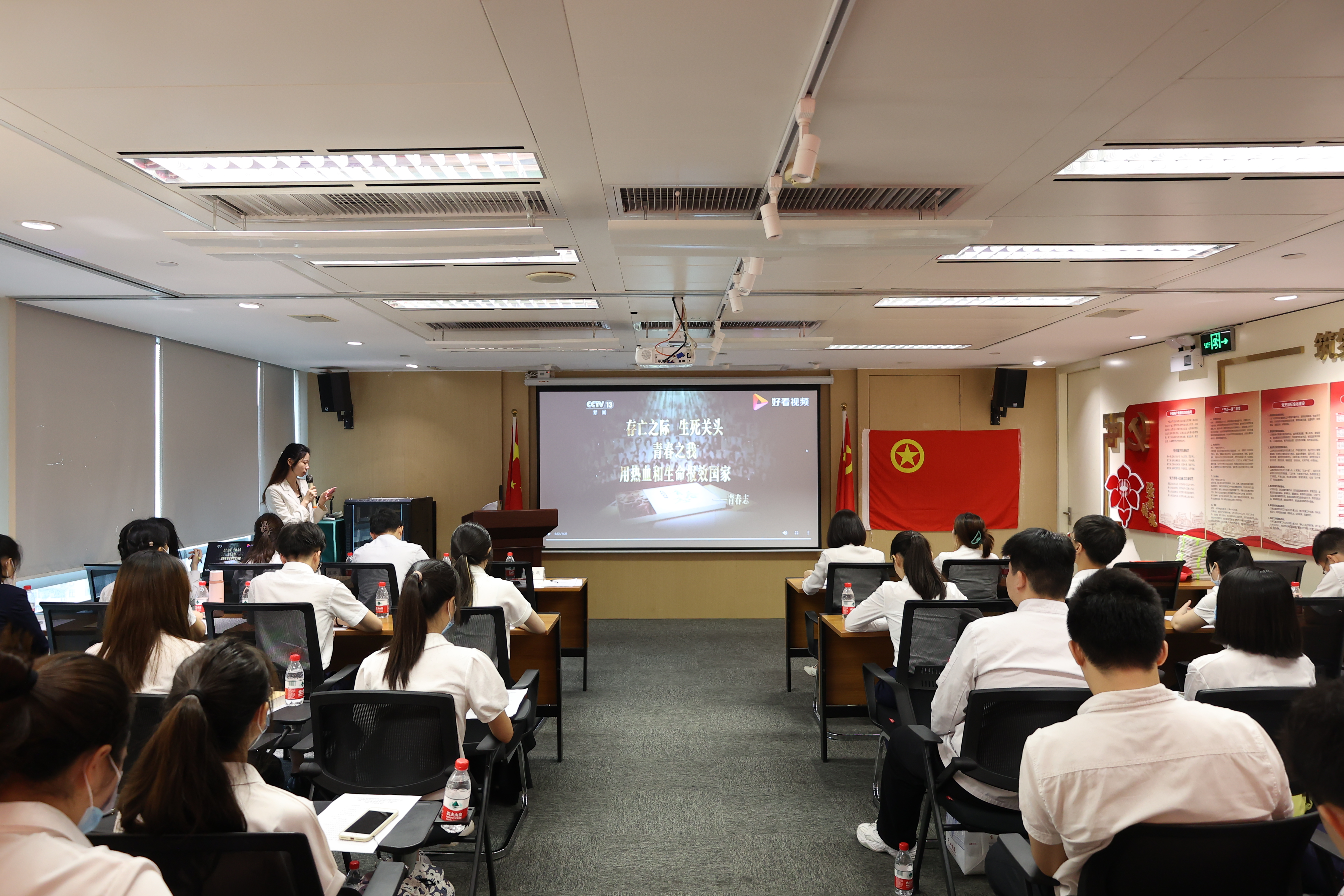 随后,在秦嘉莉同志的领誓下,全体团员举起右拳,面向团旗庄严宣誓,用铿锵有力的誓言表达出共青团员的责任与担当。并通过观看《五四百年“青春志”》视频,引领青年铭记历史,赓续血脉,缅怀五四先驱崇高的爱国情怀和革命精神。