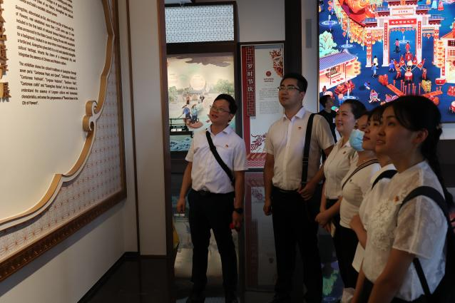 在讲解员的指引下,团员青年一行前往中心阁展厅进行研学,展馆内琳琅满目的牙雕、广绣、广彩等工艺作品引人入胜,将非物质文化遗产的文化价值生动地展示在大家面前。青年们纷纷表示,此次实地研学更深入了解岭南悠久的历史文化,进一步增强文化自信和家国情怀,为集团高质量发展凝聚奋进力量。