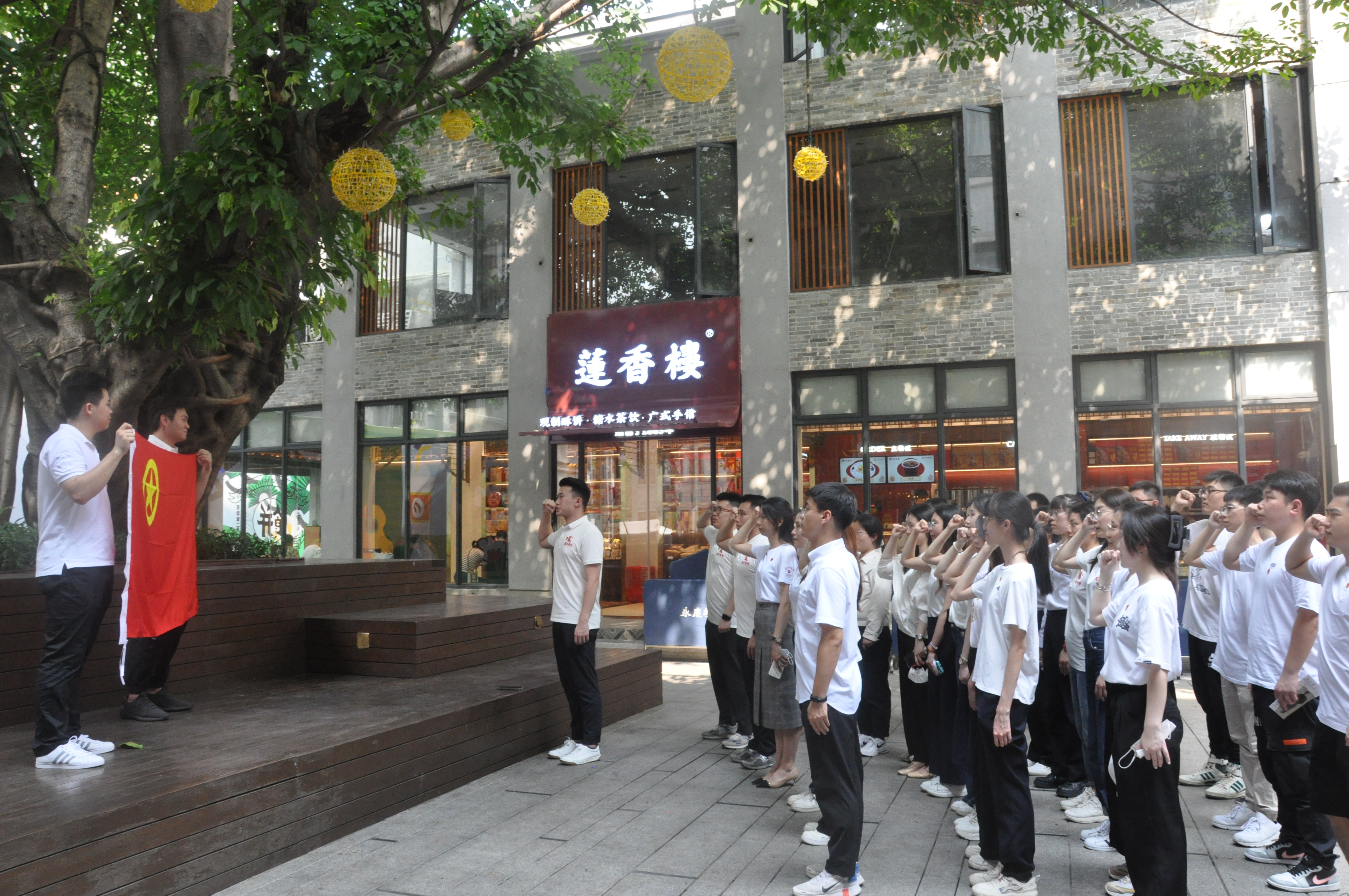 5月18日下午,餐管公司团支部、营销公司团支部携手广州城更团支部、珠江商管团支部开展“走在前列建新功”青年大学习主题团日活动。在荔湾西关历史文化街区永庆坊通过追随领袖足迹、重温入团誓词、开展党的二十大知识竞答、体验非遗点心DIY等,让团员青年们充分感受传统与现代的融合力、传承与创新的生命力,进一步激发作为新时代新青年的责任感和使命感,与企业发展共命运,坚持“干”字当头、“实”字托底,让青春力量在实现企业高质量发展的道路中绽放绚丽之花。