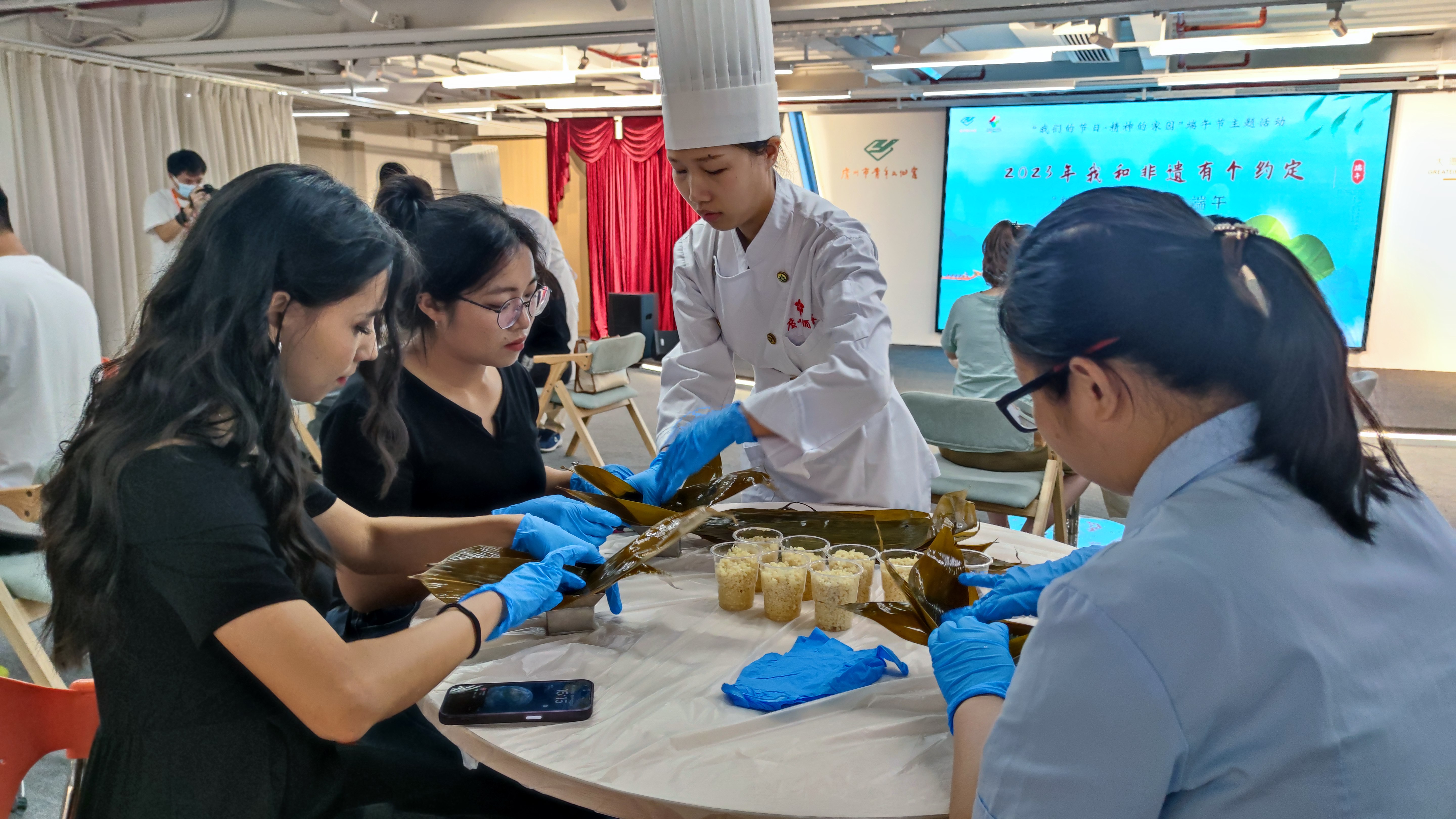 在端午佳节来临之际,为传承弘扬中华优秀传统文化,激发非遗活力,6月15日下午,广州酒家集团利口福公司团总支受广州市青年文化宫邀请,组织青年研发师傅、团员青年前往青年文化宫共同举办2023年“‘粽’是有情 共度端午”主题活动,现场吸引了粤港澳青年、社会团员青年等30多人踊跃参与。
